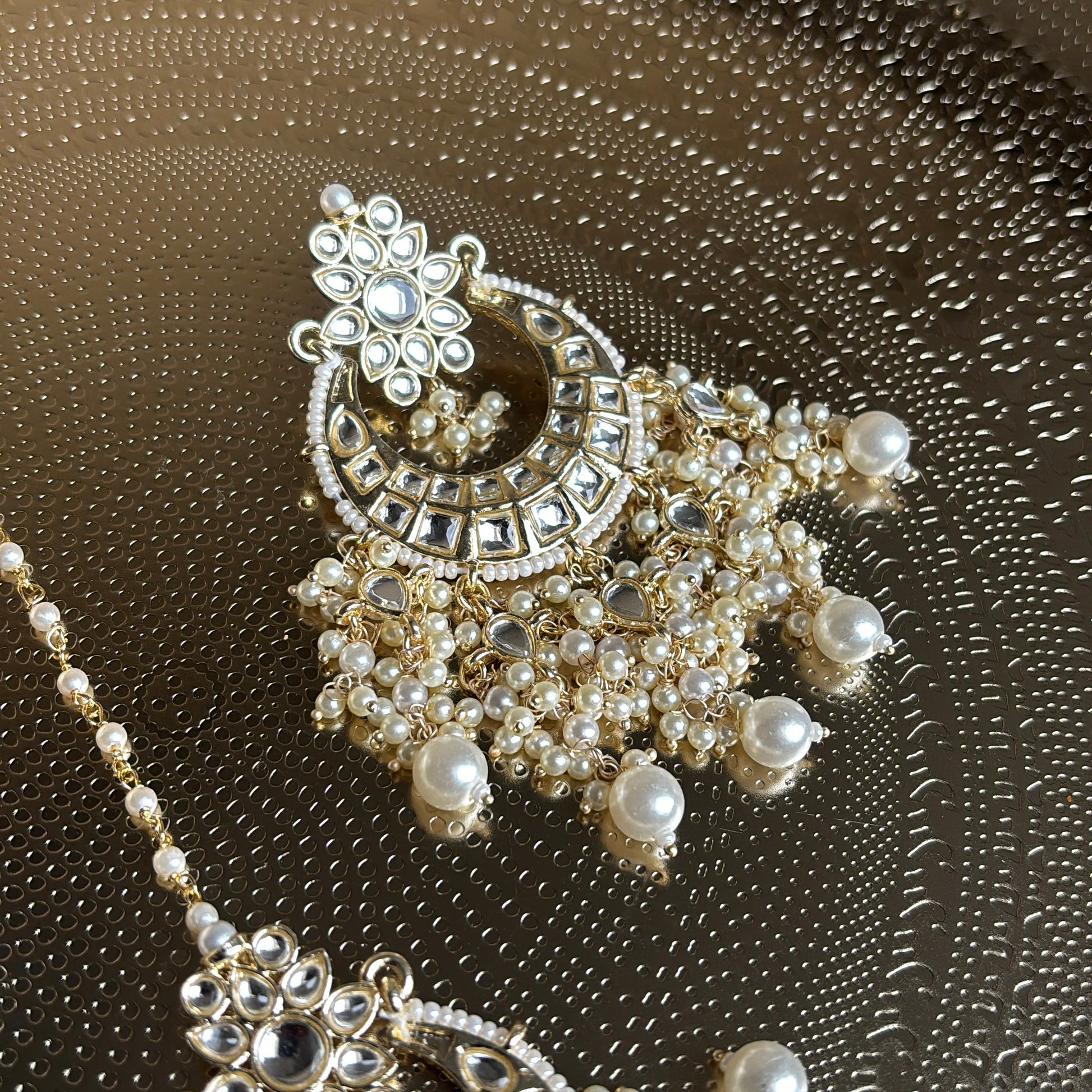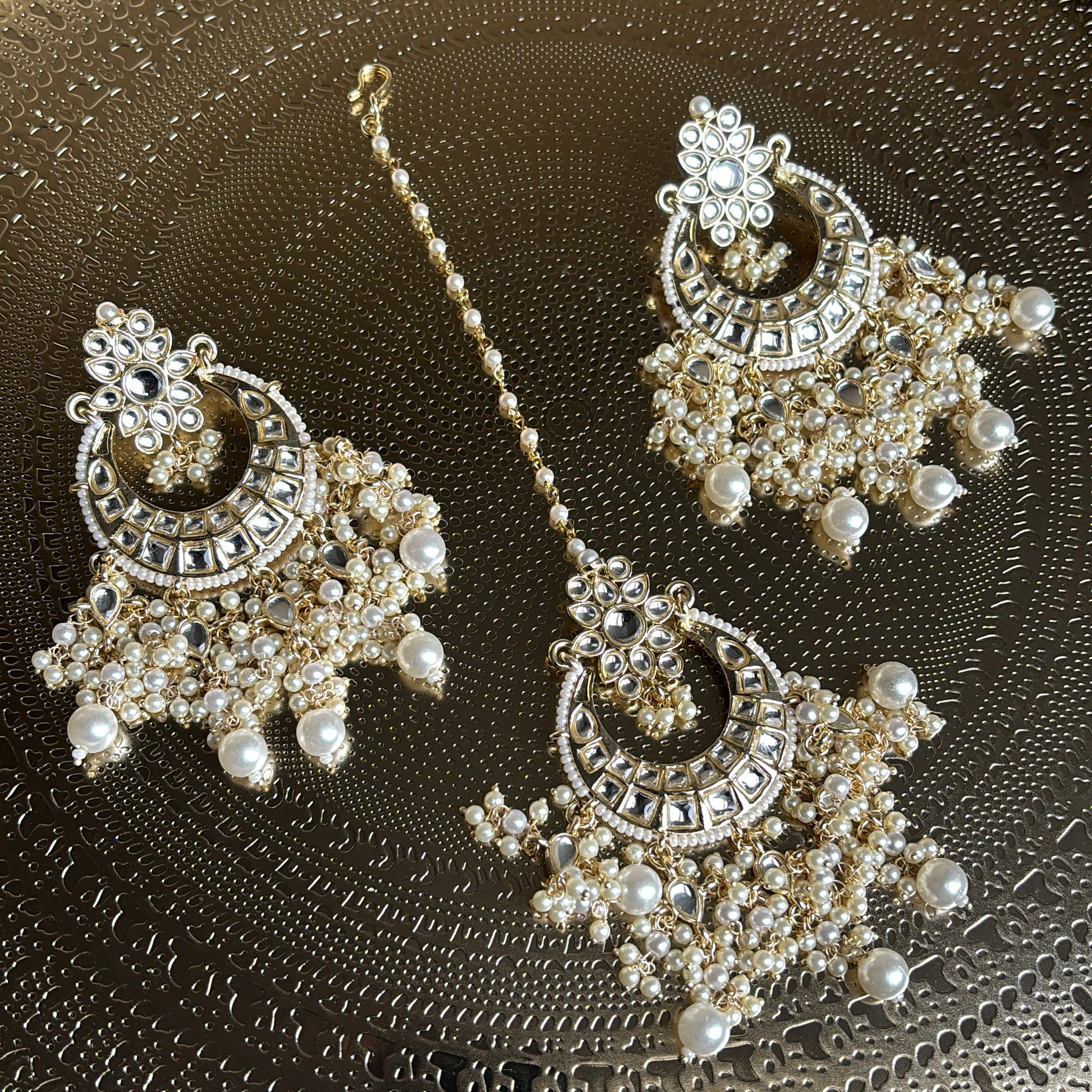 Trending kundan stones statement earrings with matching statement tikka