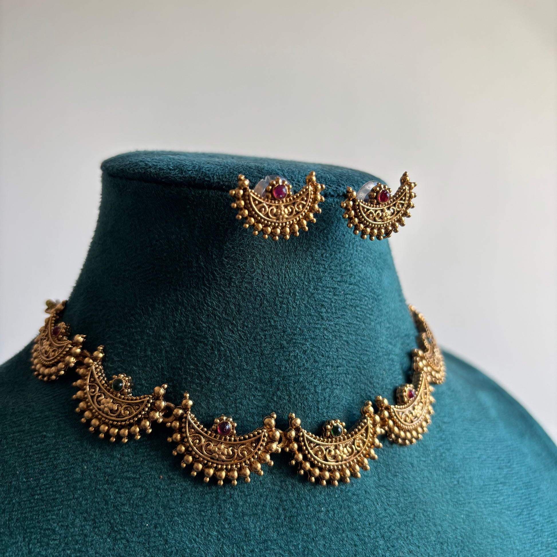 Exclusive multi colour stone moon shape short necklace with matching unique earrings