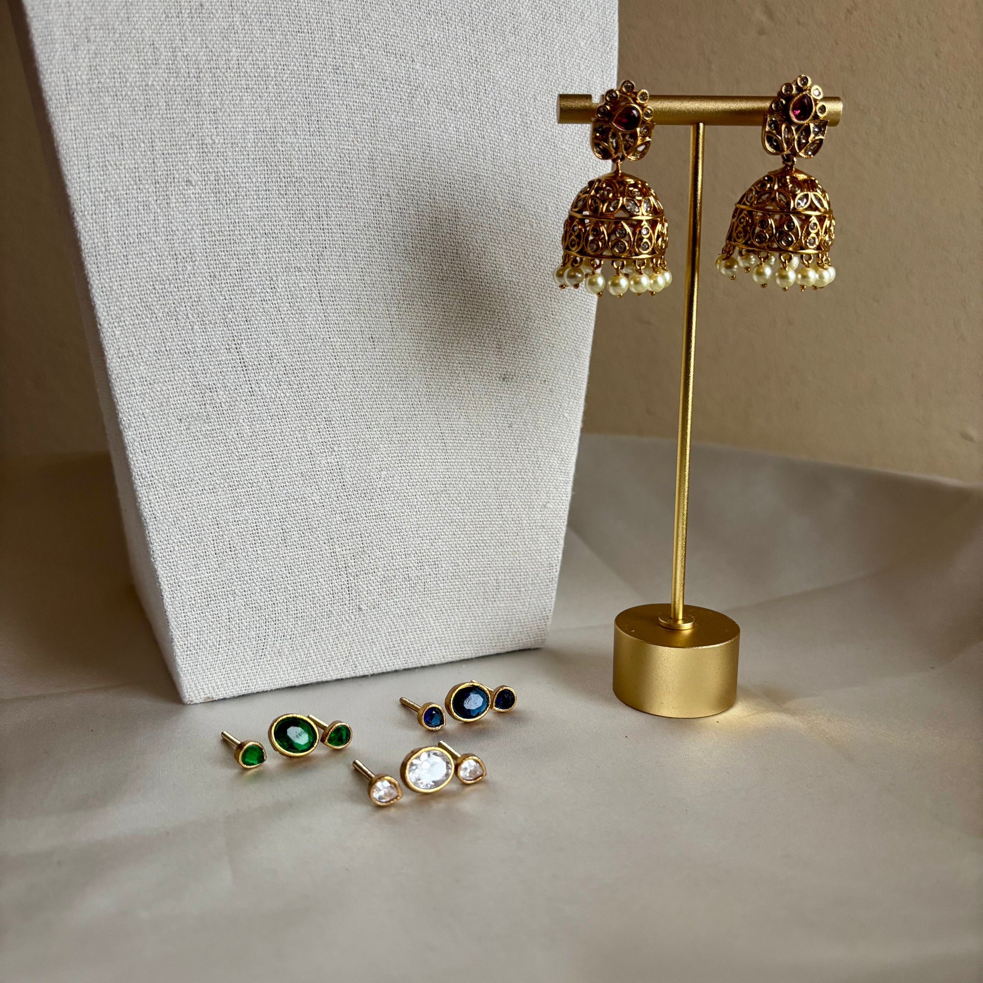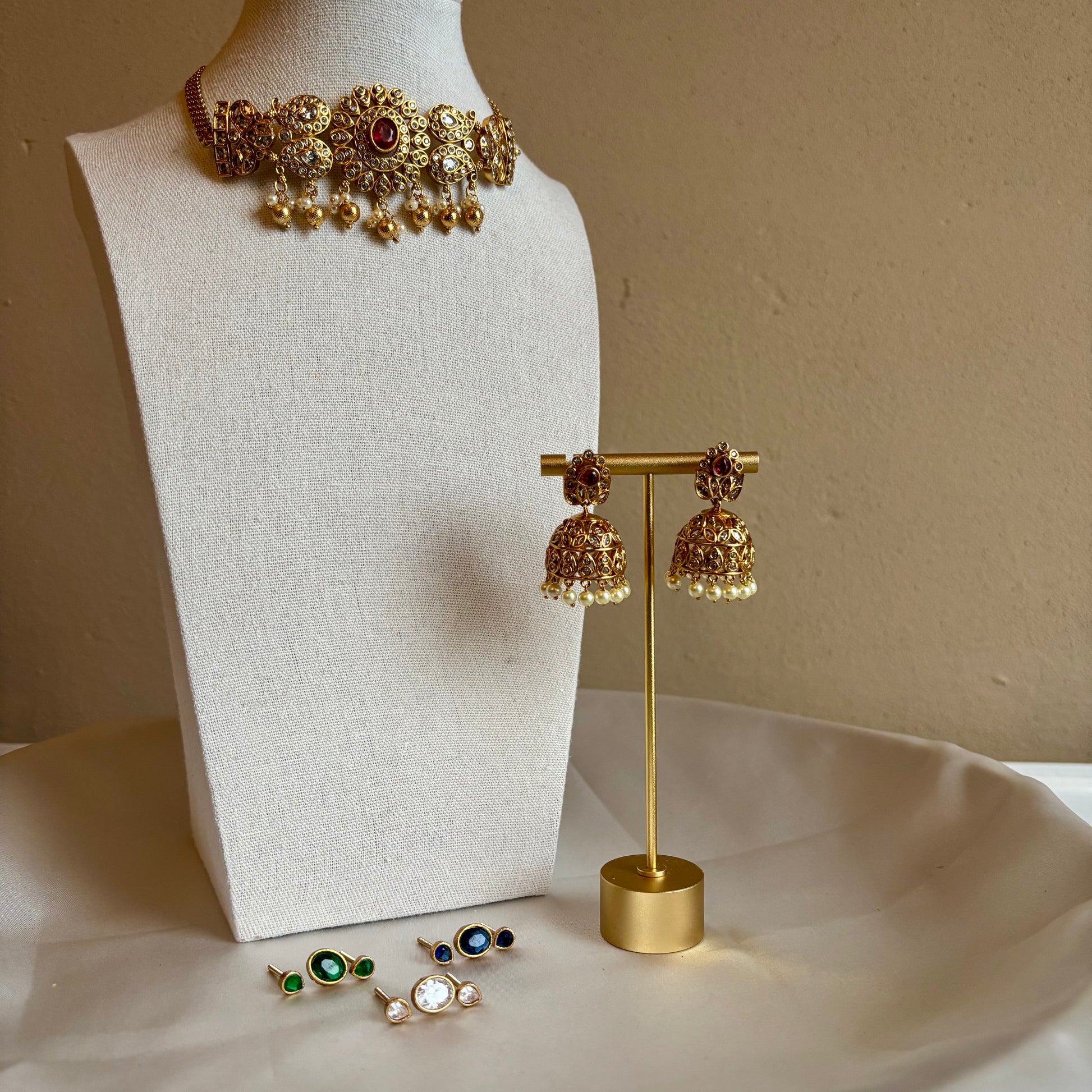 Exclusive 4 in 1 changeable stone traditional necklace with matching statement jhumkas