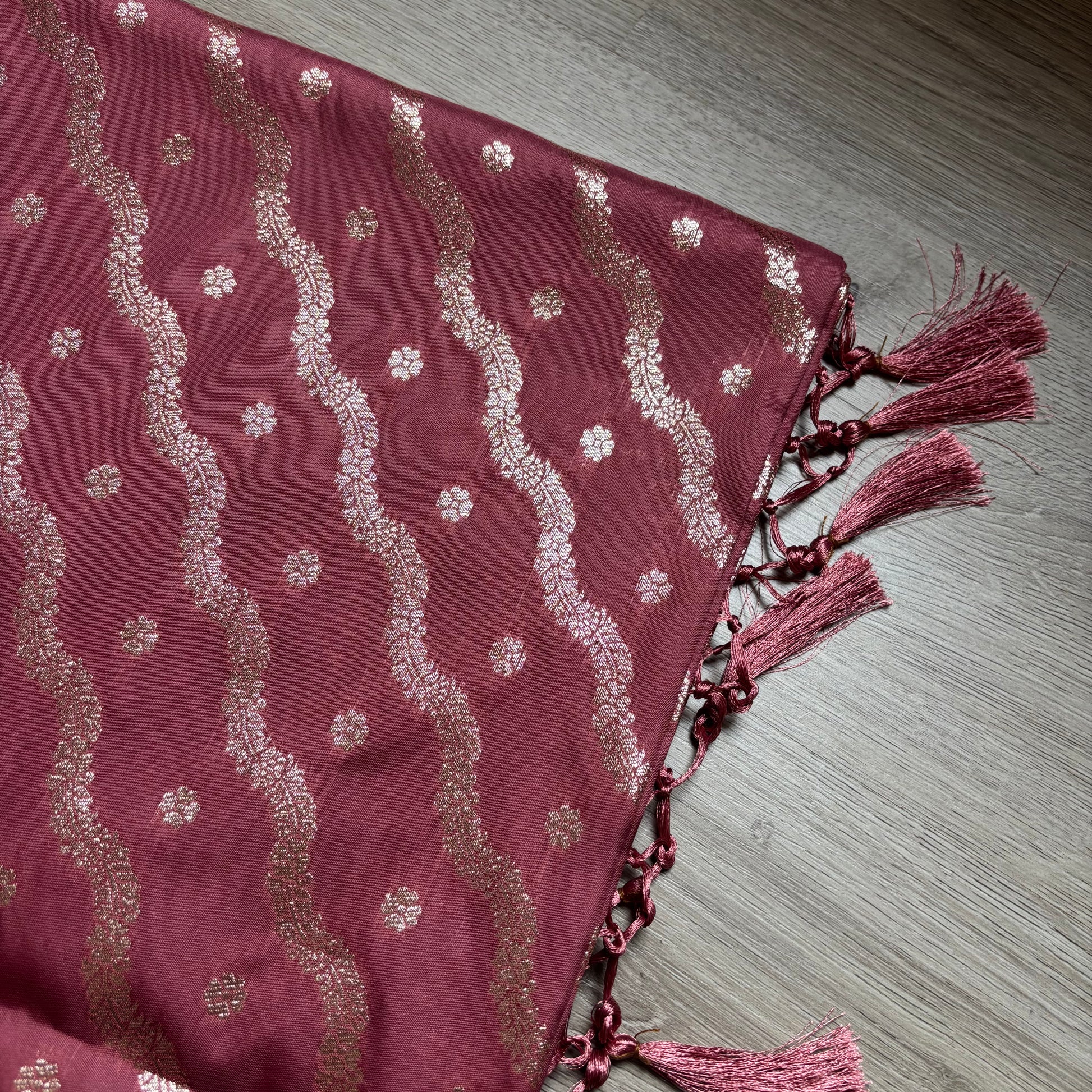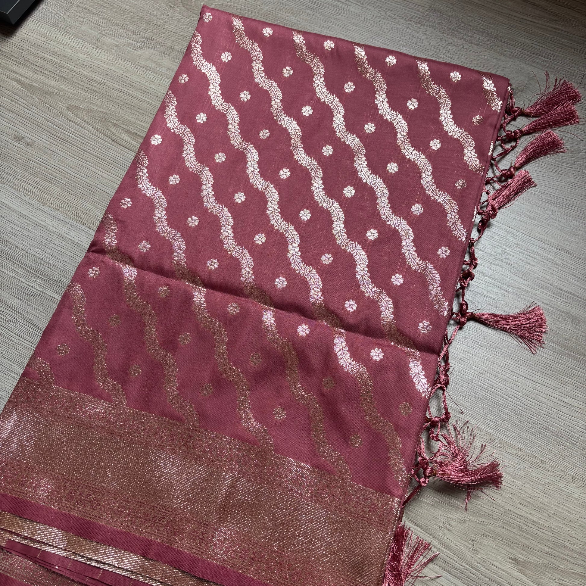 Premium mauve colour Banarasi soft silk saree with matching unstitched blouse material