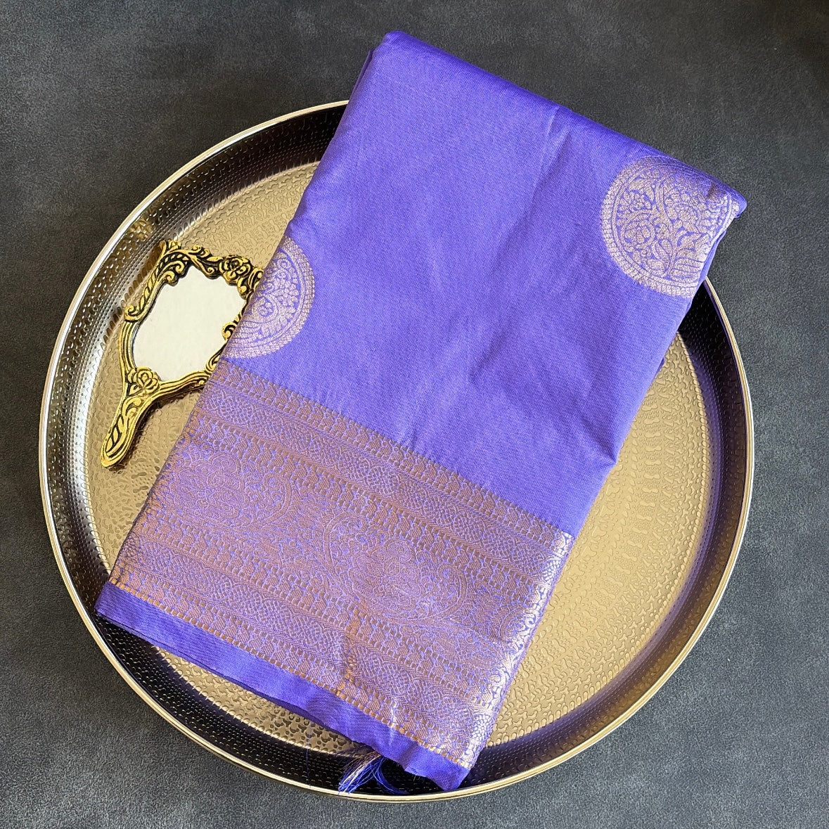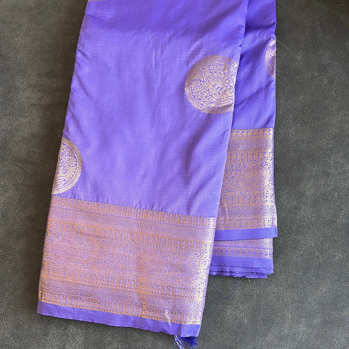 Bestselling lavender soft semi kanchipuram saree with gold work.