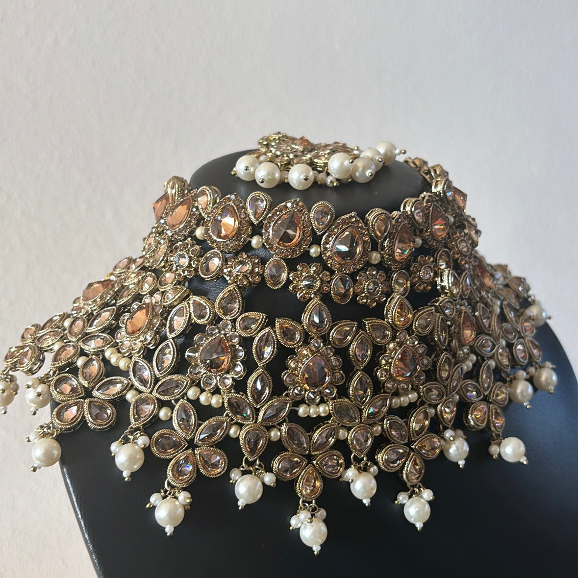Trending 2 neckpiece antique gold set with matching statement jhumkas and tikka