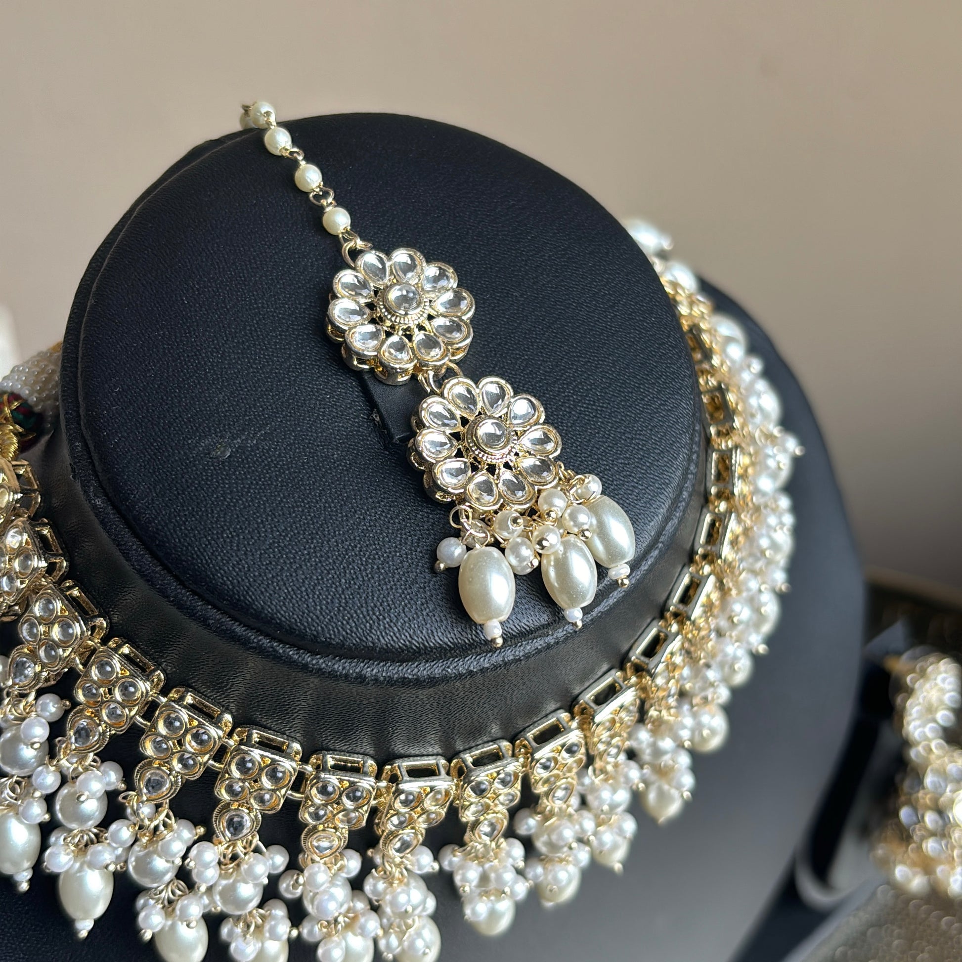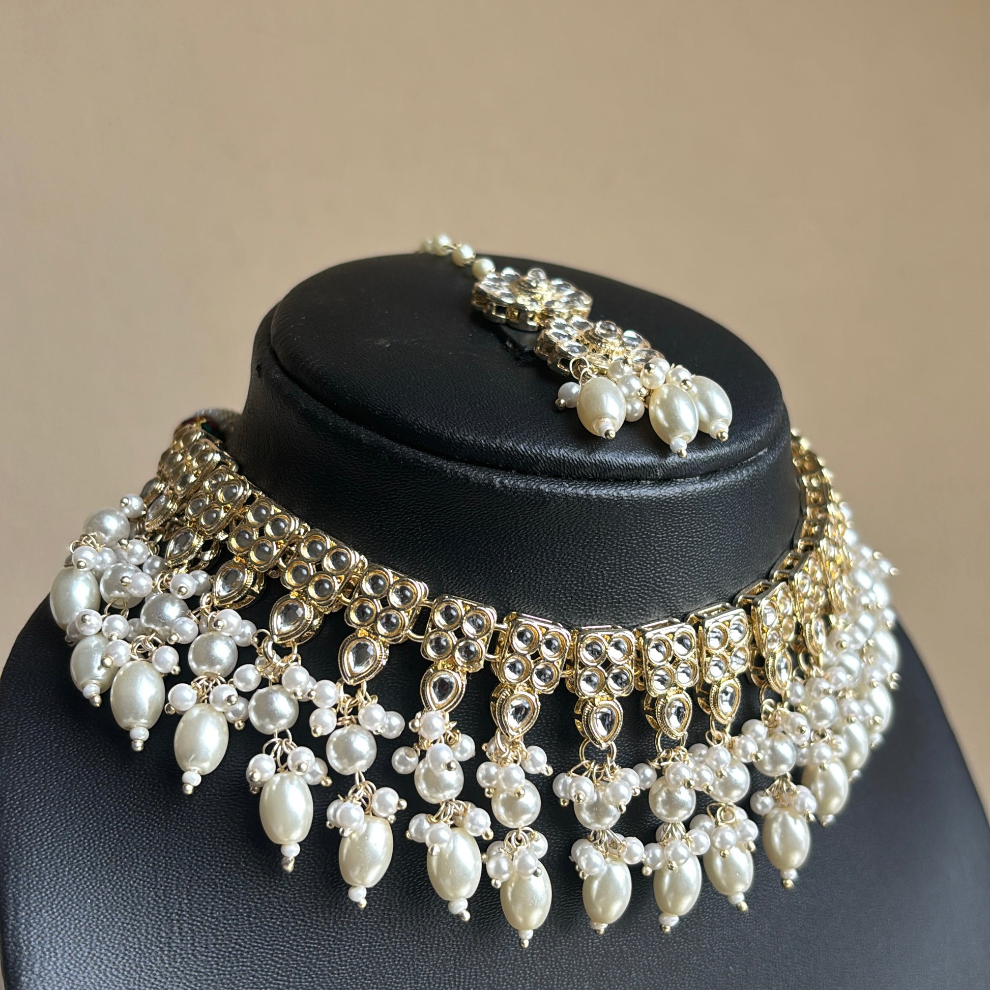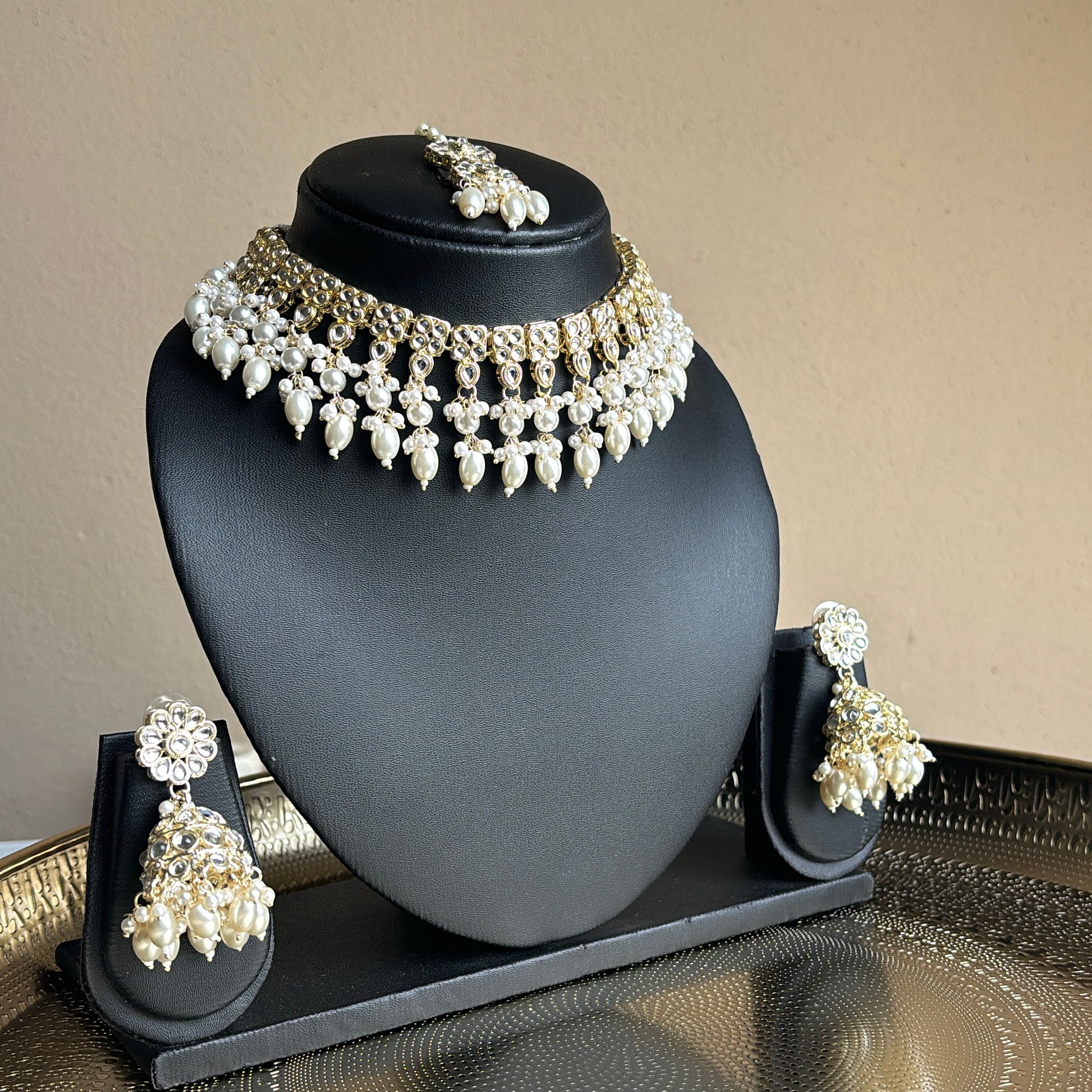 Bestselling kundan stone choker/short necklace with matching elegant jhumkas and tikka