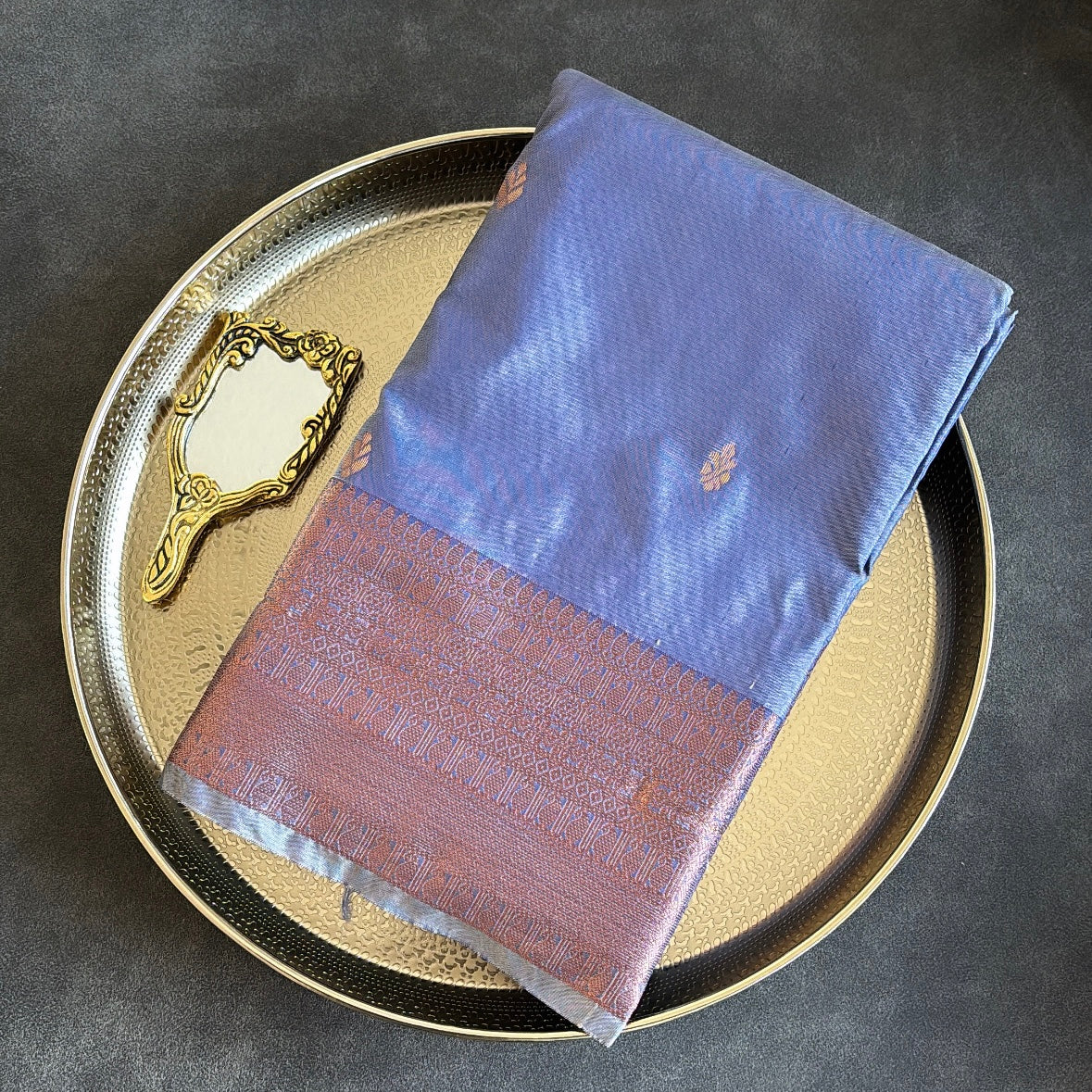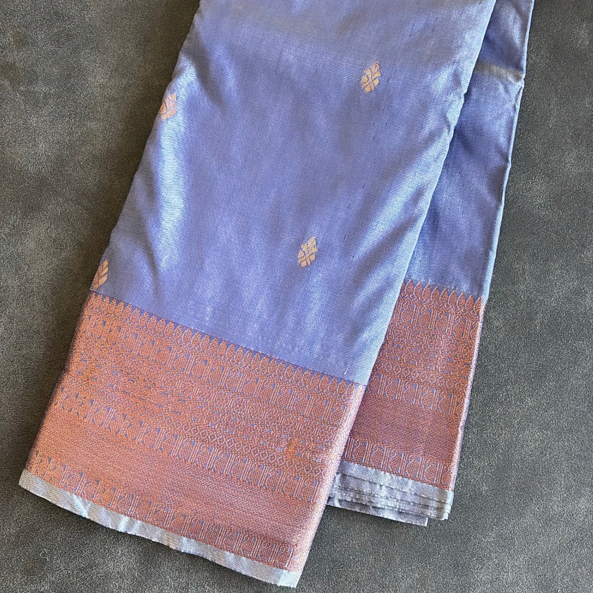 Bestselling soft semi kanchipuram saree in dark greyish blue shade with rose gold work