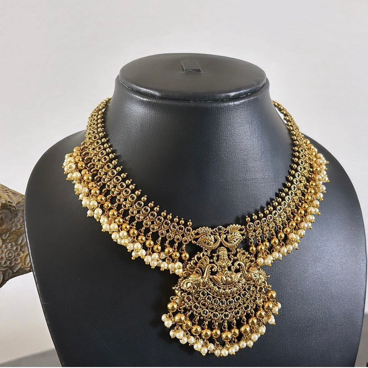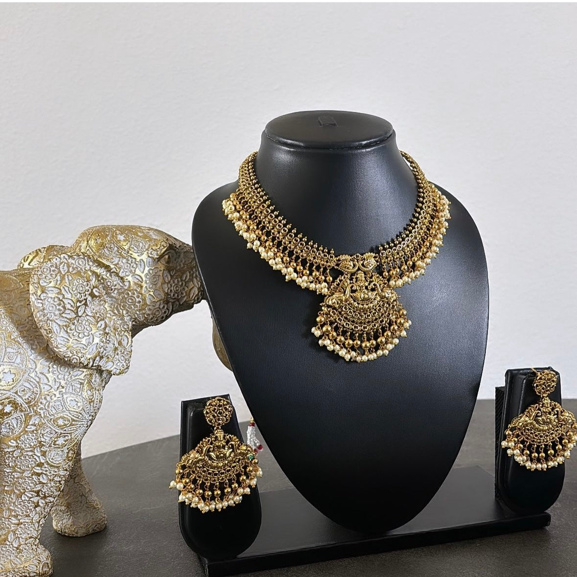Exclusive Lakshmi design short necklace with matching Lakshmi design statement earrings