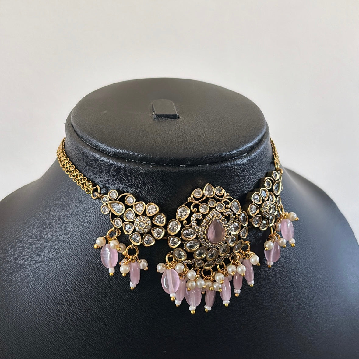 Exclusive pastel pink Victorian choker with matching jhumkas