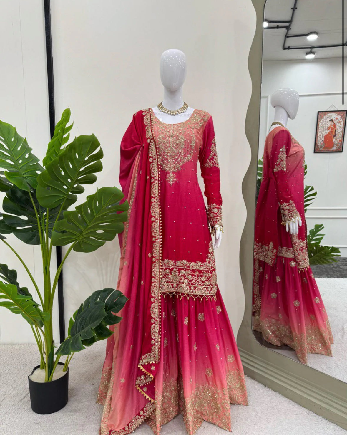 Exclusive ombre pink fully stitched top with matching bottom and dupatta