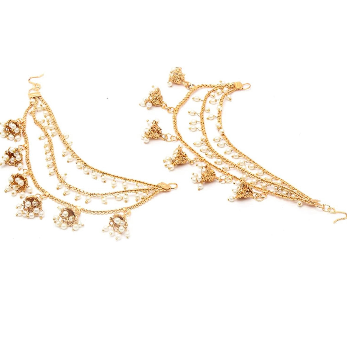 Statement earchains with hanging jhumkas and dropping pearls